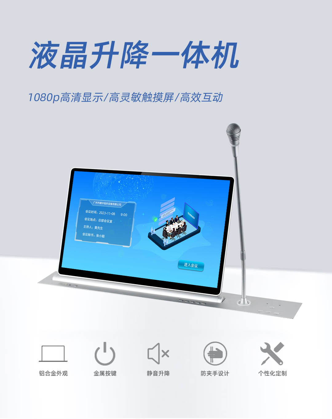 升降机高端铝合金型板材,磨边工艺设计,光滑防割手,表面采用CNC成型技术,电极氧化处理工艺;超薄高清IPS触摸显示屏;支持高清1920X1080@60Hz;人性化按键,充分做到简约,易用,可靠、耐用、可满足用户各种应用需求。